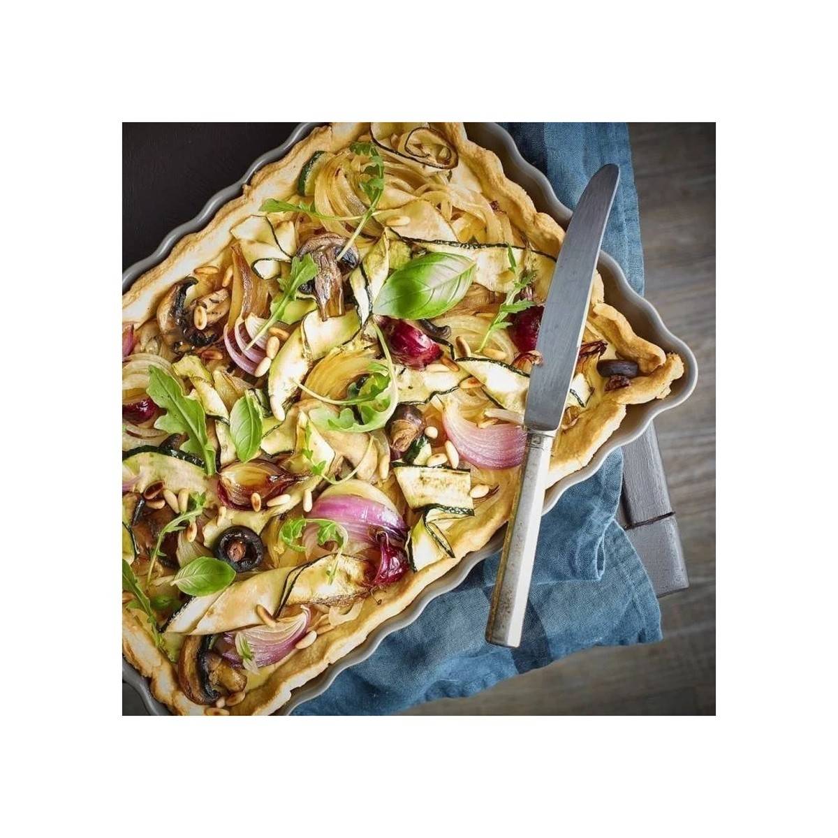 Keramická obdélníková koláčová forma v pepřové barvě od francouzského výrobce Emile Henry, rozměry 24 x 34 cm.