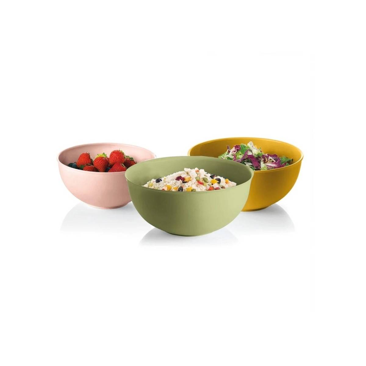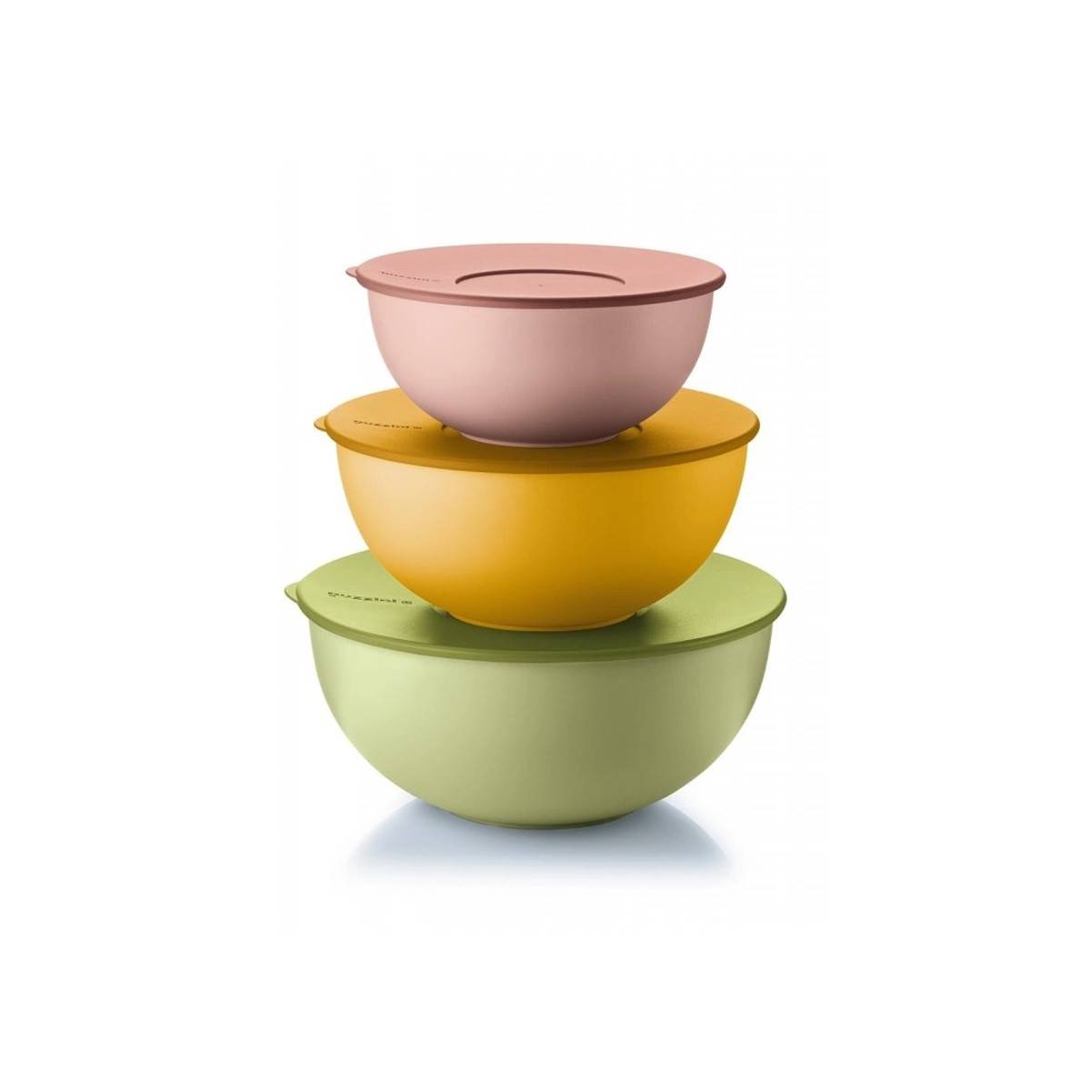 - Sada tří praktických kulatých misek s víkem pro uskladnění, transport nebo servírování potravin.