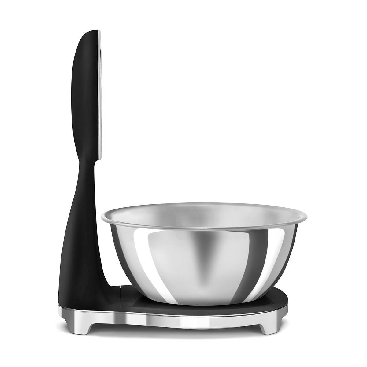 - Stylová kuchyňská váha SMEG KSF01 s černo-nerezovým provedením.